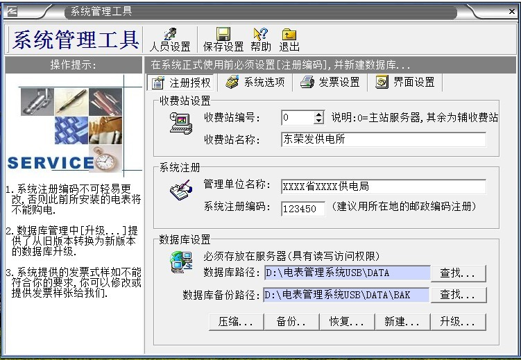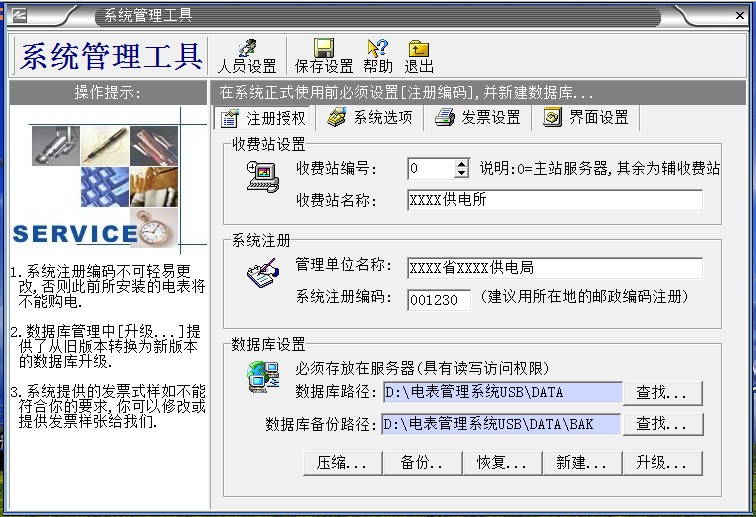 2、“系統(tǒng)數(shù)據(jù)”必須備份,如果沒有數(shù)據(jù)備份的話,系統(tǒng)第2次重裝的時候輸入原來第一次系統(tǒng)安裝設(shè)置的“系統(tǒng)注冊編碼”,導(dǎo)入備份的數(shù)據(jù)庫,才能使原來安裝的電表正常充值使用。