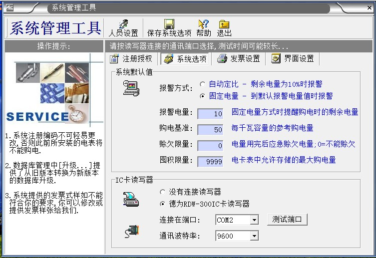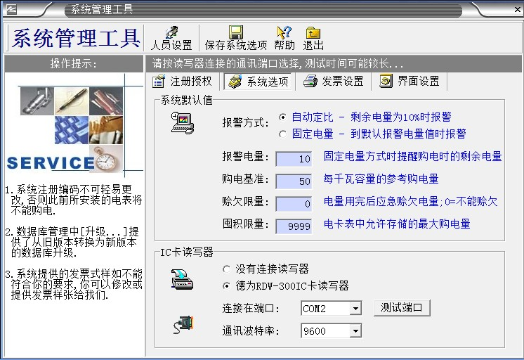 1、軟件第一次安裝的時候,“系統(tǒng)注冊編碼”最好設(shè)置為自己內(nèi)部的一組數(shù)字(不要設(shè)置為默認“系統(tǒng)注冊編碼”,防止別人利用相同軟件盜電,也不要泄露給非管理人員)。“系統(tǒng)注冊編碼”要牢記,在系統(tǒng)正式使用后,“系統(tǒng)注冊      編碼”不可修改。