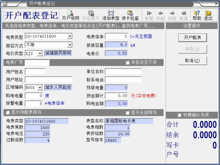 鼠標左鍵:,鼠標左鍵:“開戶配表登記”,出現(xiàn)以下對話框:
