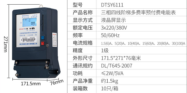 DTSY6111型三相四線階梯多費率預(yù)付費電能表(以下簡稱“儀表”)是根據(jù)居民實際用電狀況所設(shè)計、制造。它具有較高的準確度和可靠性。