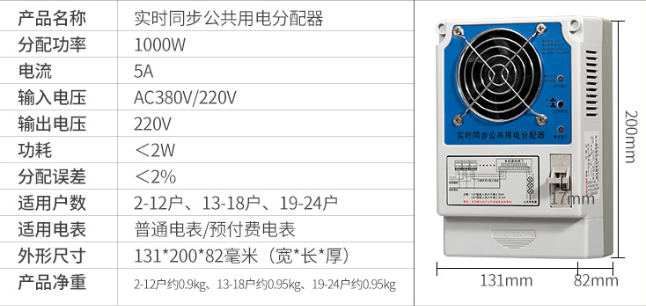 型號:2-12戶 13-18戶 19-24戶公共用電智能用電分配器