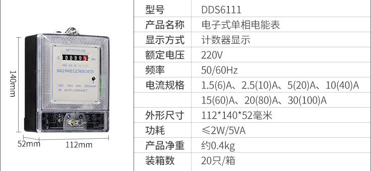 DDS6111型單相電子式電能表,由于采用集成電路和SMT制造工藝,使之測(cè)量準(zhǔn)確度,穩(wěn)定性等均得到了可靠保證.適用計(jì)量額定頻率為50Hz,額定電壓為220V的單相交流有功電能.